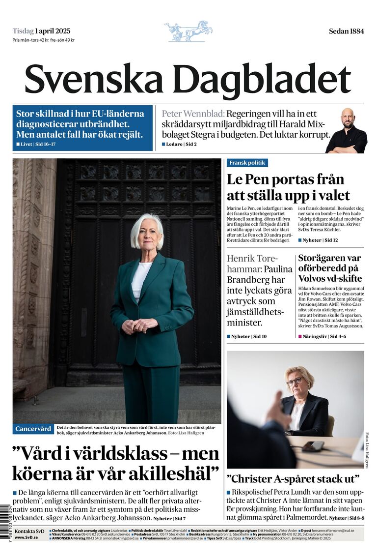 Här hittar du alla artiklar om svenska dagbladet från dn.se. Tidningen grundades 1884 och ägs av den norska förlagskoncernen schibsted. Senaste nyheterna från svenska dagbladet. Det senaste om svenska dagbladet. Politiskt betecknar sig tidningens ledarsida som obunden moderat. Svenska dagbladet står för seriös och faktabaserad kvalitetsjournalistik som utmanar, ifrågasätter och inspirerar. Svenska dagbladet ist die einzige andere schwedische morgenzeitung, die eine vollständige nationale und internationale berichterstattung anstrebt. Alla de senaste nyheterna om svenska dagbladet från dagens nyheter. The first number under new management, new form and new header. Svenska dagbladet is a daily newspaper in sweden, published in several channels. Starting june 8, 1942, svenska dagbladet became the first newspaper in sweden to publish the phantom strip on a daily basis. Vi vill ge perspektiv i alla. både svenska dagbladet och svt satsar på svensk inrikespolitik.